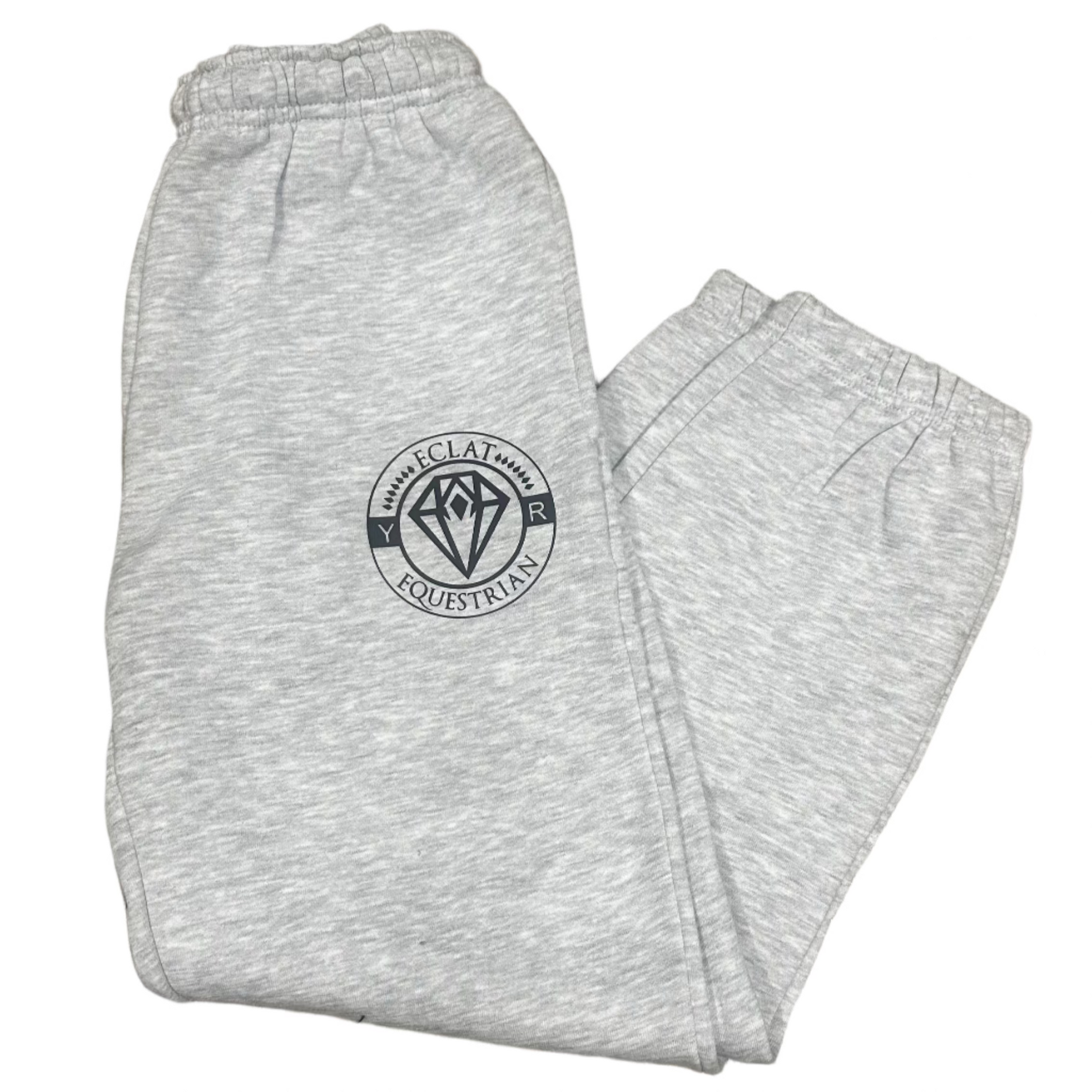Sample joggers with functional drawstring waist and black logo on leg.